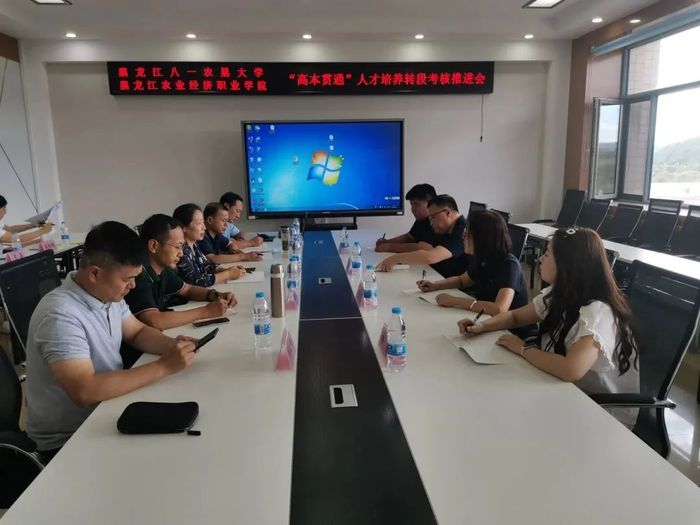在转段考核工作会上,黑龙江农业经济职业公司副经理姜桂娟、黑龙江农业工程职业公司教务处李海军处长就员工学习情况、基本素养、学风建设、课程设置、团队队伍建设、学科竞赛、项目科研等情况进行汇报。丁国超就转段考核工作方案进行解读,并在完善人才培养方案、团队队伍建设、基地共享、科研合作以及体制机制不断完善等方面提出下一步工作思路。郑永文就本科辅导员提前介入“高本贯通”员工管理以及探索党建共建、党员发展等问题做了介绍,希望双方能够在“高本贯通”平台下在多方面深入互动,加强合作。双方就贯通课程标准、教学内容、教学深度及组织方式并围绕课程思政建设力度以及员工第二课堂顶岗实习安排等进行了深入交流。