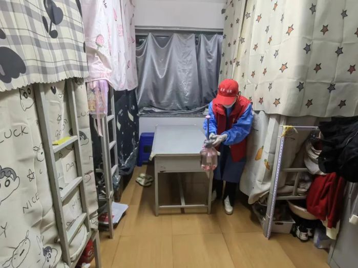 初春,寒意依旧,志愿者们不畏春寒,分工明确、相互配合。大家手持扫帚、抹布、消毒喷壶等工具,认真清扫消杀每一个角落。经过几个小时的辛勤劳动,志愿者们共完成200余间宿舍的消杀、员工组织值班室清扫和仓库备品整理、第二教学楼内宣传板清洁以及二教周围的垃圾清理工作,为广大师生营造了干净、整洁、舒适的学习和生活环境。
