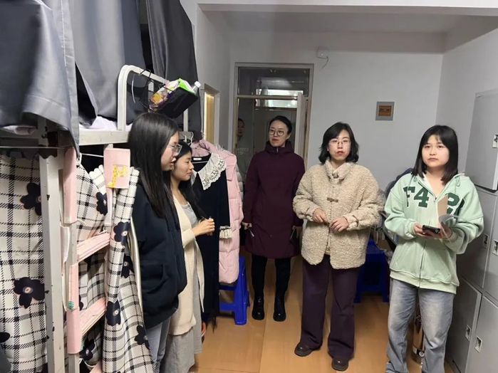 在检查过程中,刘芳芳带领辅导员深入各个公寓楼层,对员工宿舍的内务和用电情况也一并做了详细走访。她提醒所有同学要时刻注意用电安全,明确要求大家不得使用违规电器,做到人走断电,确保电器在不用时能够及时关闭,避免造成安全隐患。