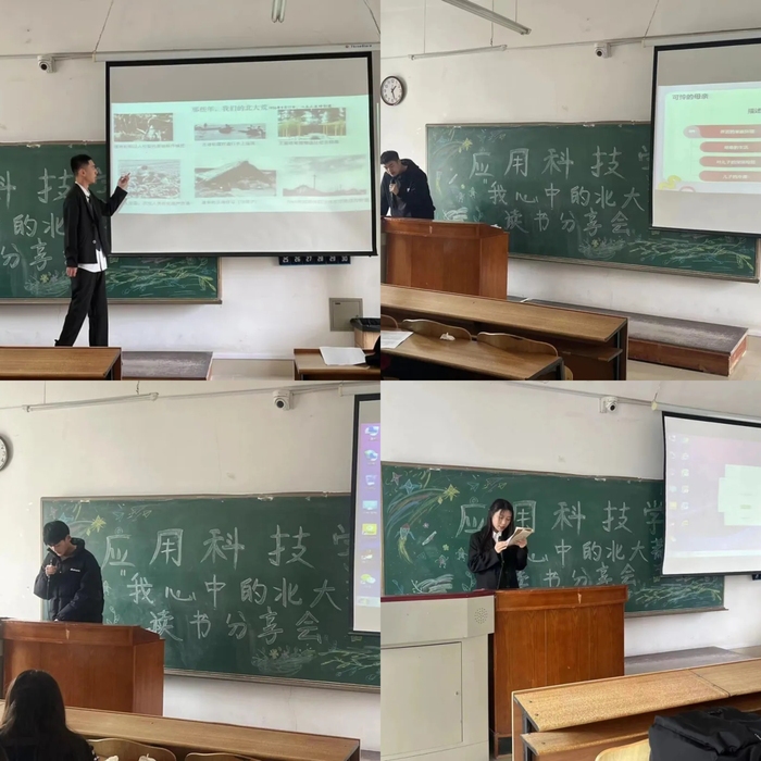 同学们运用多种方式分享自己在读书中的感悟与收获,活动现场气氛热烈。其中,商月分享了著作《仰视你,北大荒》,讲述了新中国成立75年来北大荒服从国家利益、服务国家战略,成为“中华大粮仓”的光辉历程;李莹分享了人物传记《梁军传》,与大家一起回顾新中国第一位女拖拉机手梁军的故事。她号召同学们像梁军一样,突破自己、勇于创新、坚持不懈做好每一件事。王莹分享了作品《风雪人间》,向同学们展示了主人公丁玲自1985至1970年间在北大荒农场的生活片段。