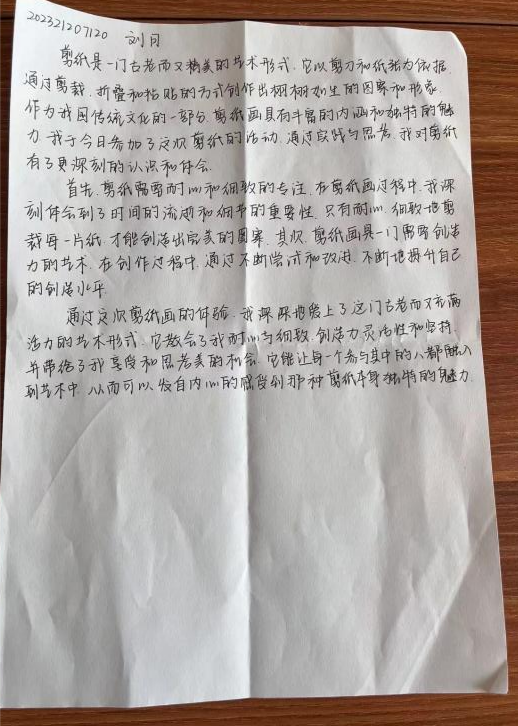 活动伊始,员工骨干向大家分享了剪纸艺术的起源与发展,以及剪纸作品的意义。同学们在感受剪纸艺术的同时,开始了对自己作品的构思与创作,从简单的对折、描绘,到精细的剪裁,每一步都充满了乐趣与挑战。大家纷纷拿起剪刀,在纸张翻飞,指尖灵动间,一幅幅精美、栩栩如生的剪纸作品也随之而诞生。