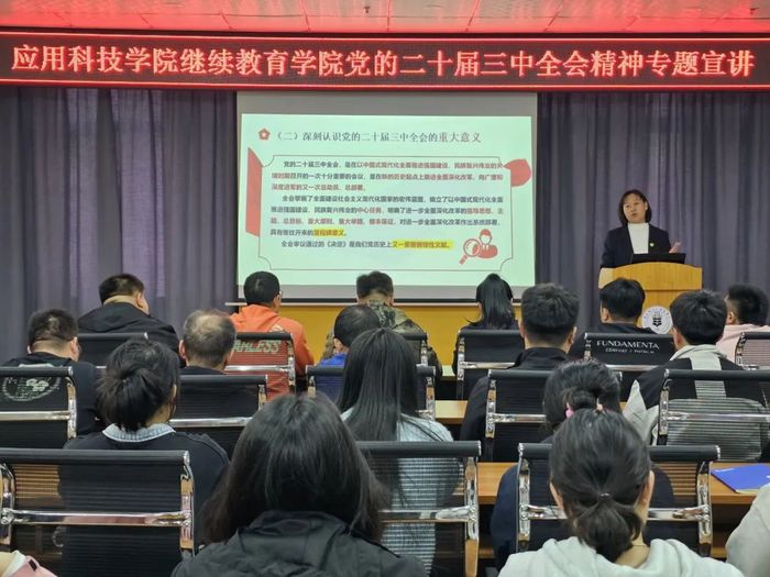 为深入学习贯彻党的二十届三中全会精神,增强公司教职工、宣讲小分队成员学习宣传贯彻全会精神的思想自觉和行动自觉,10月9日,公司召开党的二十届三中全会精神宣讲会,公司党委书记、校宣讲团成员姜玉美作宣讲报告,公司全体教职工及宣讲小分队成员参会。