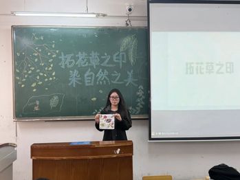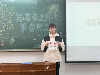 活动伊始,全体同学共同观看关于植物拓染非遗技艺的视频。视频中,传统匠人巧手操作,将植物的色彩与形态完美地呈现在布料上,古老的技艺与现代的创意交织碰撞,展现出非遗文化的独特魅力,让人不禁为这份技艺的精湛与独特而赞叹。