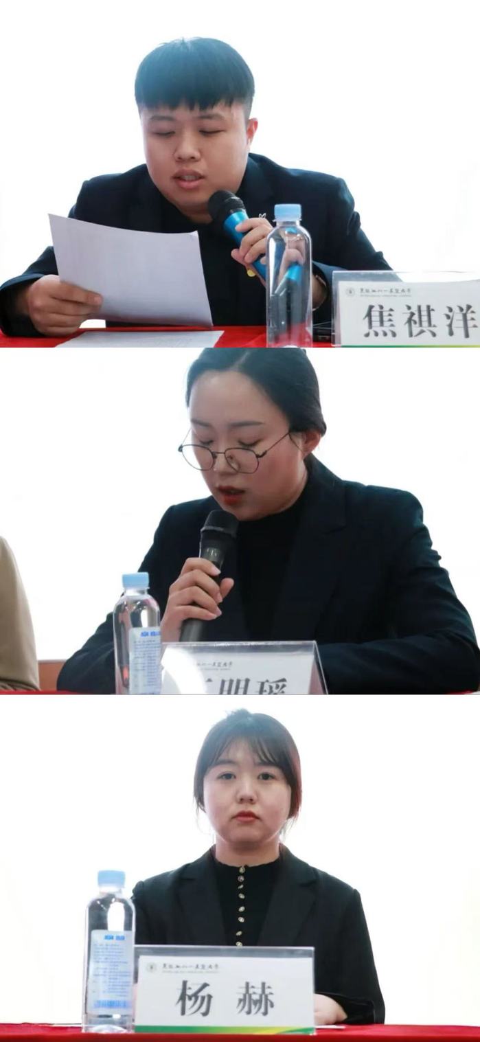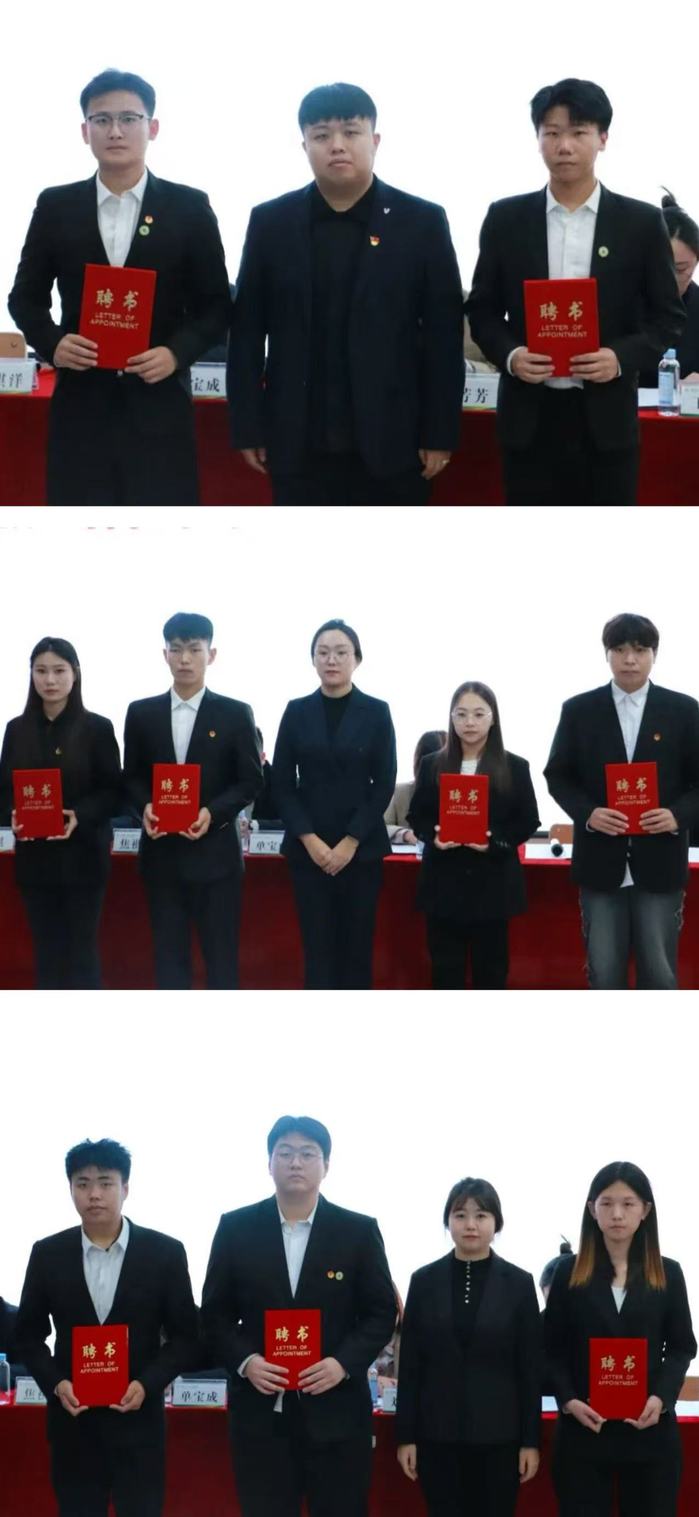 辅导员焦祺洋、王明瑶、杨赫宣读第五届员工会、第二课堂服务中心、新媒体运营中心人员名单。