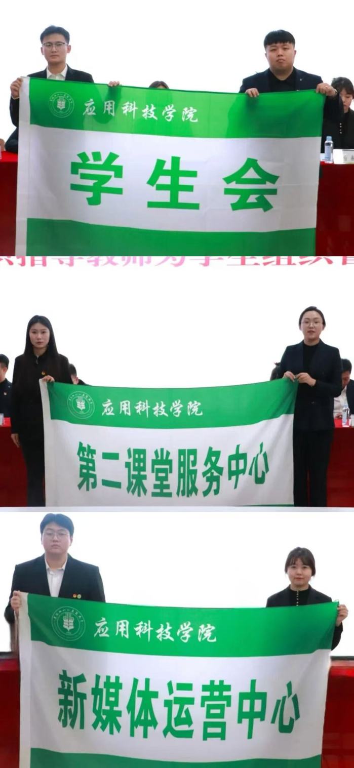 员工组织指导教师为新一届员工组织管理层授旗。