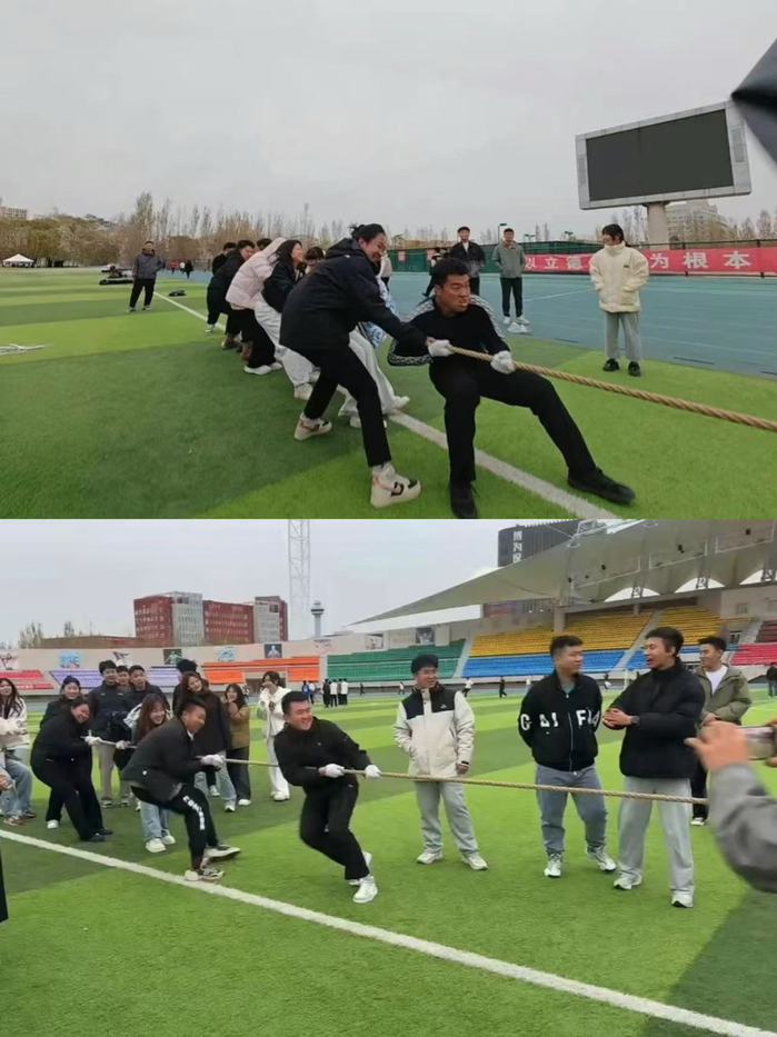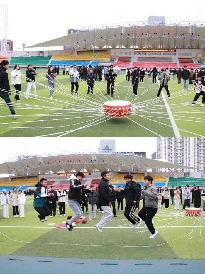 本次素质拓展活动分为开场互动、破冰游戏、影像定格三个环节,活动伊始,全体员工骨干通过简单自我介绍,增进彼此了解,并通过数字游戏将全体员工骨干随机分成三组,分组过后正式进入游戏环节,在“齐心协力同心鼓”活动中,每组员工骨干抻起鼓绳,团结协作颠起鼓球,每根绳子不仅连接起小小的战鼓,同时凝聚了全体同学拼搏奋斗、团结一致的决心;在“绳彩飞扬”摇大绳游戏中,同学们应声而动、通力合作、统一步调,将默契与信任发挥到极致;在拔河比赛中,各队伍齐心协力,紧握绳索,奋力拼搏,大家边喊口号边用劲,现场气氛热烈欢快。