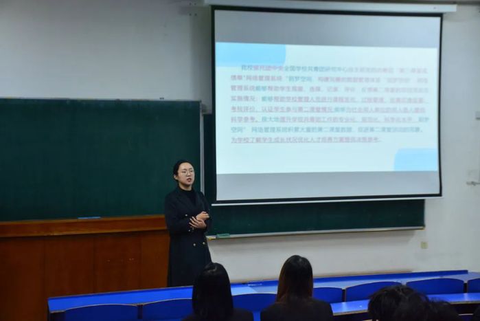 王明瑶做“到梦空间活动发布规范”专题培训,从“第二课堂成绩单”制度引入,从活动发布、报名参与,到学分认定等各个环节,详细地讲解了到梦空间的功能和操作方法。她强调了到梦空间在老员工综合素质培养中的重要性,不仅是记录同学们校园活动轨迹的平台,更是激励大家积极参与各类实践活动、提升自身能力的有效工具。通过培训使全体成员对到梦空间有了更加深入、全面地了解,增强“第二课堂”活动组织工作的规范化、制度化,有利于“第二课堂”活动质量的提升。