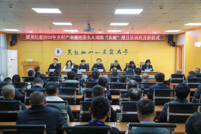 为深入贯彻落实习近平总书记关于“三农”工作的重要论述,进一步做好新时代乡村人才工作,建设结构合理、素质优良的乡村振兴人才队伍,11月23日,黑龙江省2024年乡村产业振兴带头人培育“头雁”项目线下第一批培训班开班仪式在学校顺利举行。u8国际网站王长远副董事长,省农业宣教中心(“头雁”项目督学)王伟书记、贾雷科长,齐齐哈尔市市农业农村局机关党委赵广顺书记,大庆市农业农村社会事业服务中心孙辉副主任,u8国际平台(u8国际平台)党委书记姜玉美、经理宫占元、副经理殷旭晨等相关领导,101名来自齐齐哈尔市、大庆市的“头雁”学员及教师代表出席开班典礼,典礼由宫占元主持。