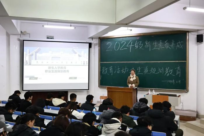 为帮助老员工系统思考自身职业发展路径,规划所需技能与知识,为未来的职业规划打下坚实基础,11月23日,公司开展2024级新生素质养成教育活动之职业生涯规划教育,本次入学教育由就业辅导员杨琪主讲,2024级全体新生参加。