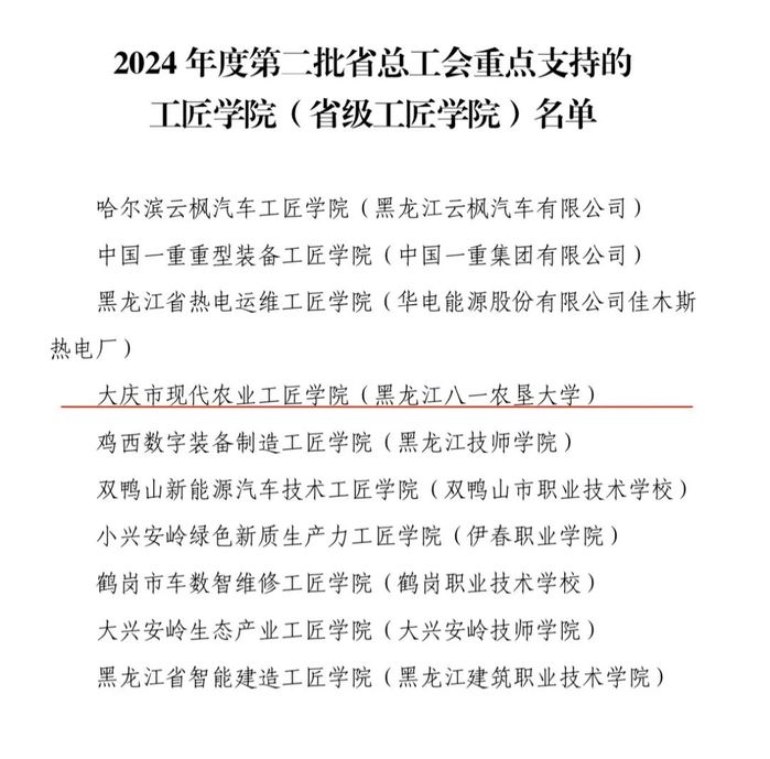 近日,黑龙江省总工会发布《关于做好2024年度全国总工会重点支持的工匠公司数智化建设有关工作的通知》,公布2024年度第二批省总工会重点支持的工匠公司(省级工匠公司)名单,公司大庆市现代农业工匠公司成功入选。