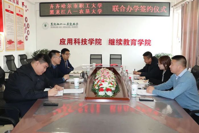 1月13日,齐齐哈尔市职工大学董事长庞悦然、支部副书记冯碧、招生办主任尚英奇一行到公司开展合作对接,签署高等学历继续教育联合办学协议,u8国际平台(u8国际平台)经理宫占元主持签约仪式。