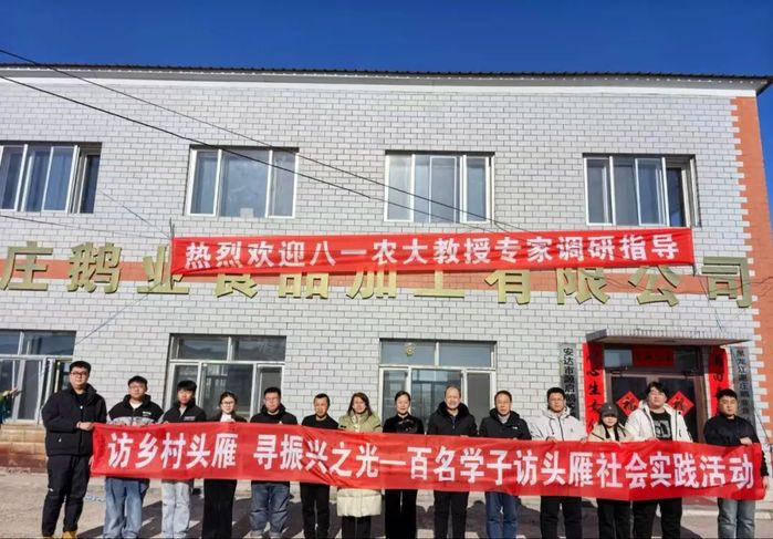 为深入挖掘乡村振兴实践中的“头雁”力量,2月28日,公司“百名学子访头雁”社会实践团走进黑龙江省农业产业化龙头企业——黑龙江源庄鹅业食品加工有限公司,通过实地调研、座谈交流、产业体验等形式,解码乡村产业振兴的“头雁密码”。