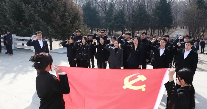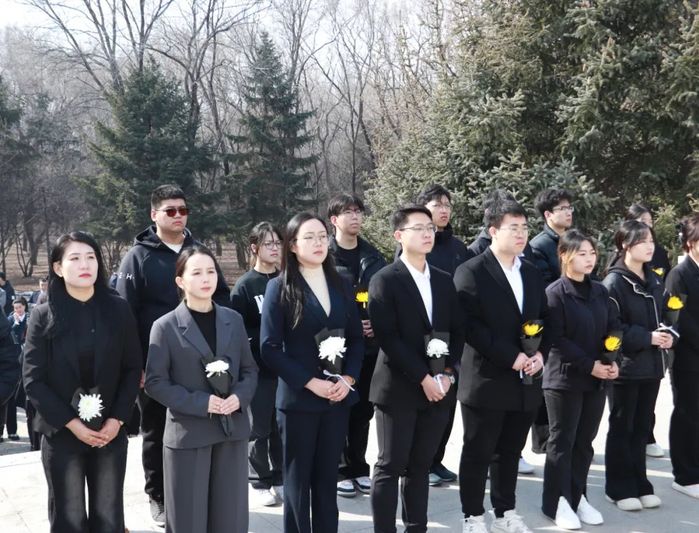 师生代表怀着无比崇敬的心情,从城市森林入口缓步走向烈士纪念碑。面向纪念碑,师生整齐肃立,现场庄严肃穆,姜吉烨同学以饱含深情的话语,讲述了大庆烈士纪念碑背后波澜壮阔的历史。了解烈士纪念碑背景后,全体师生面向纪念碑深深鞠躬致敬,垂首默哀三分钟,向英勇牺牲的革命烈士表达深切怀念。大家依次走到纪念碑基座前,将手中的鲜花轻轻敬献,朵朵鲜花寄托着对先烈的崇高敬仰与无限哀思。随后,全体党员高举右拳,重温入党誓词,铿锵有力的誓言在纪念碑前久久回荡,提醒着每一位党员要赓续红色基因,牢记入党初心。员工代表带领全体同学宣誓,鼓舞大家铭记历史、缅怀先烈,珍惜时光、努力学习,为实现中华民族伟大复兴贡献力量。