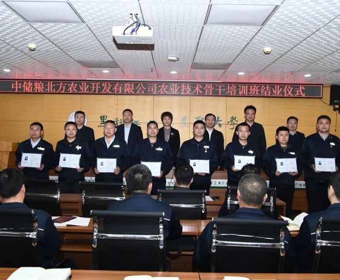 经过1个月的集中培训,4月2日培训班在集团顺利结业。中储粮北方农业开发有限公司党委副书记(副总经理)白鹏军、农业生产管理处处长杨帆、资深主管姜晓宇、u8国际网站董事长李翠霞、副董事长孙东波、公司党委书记高波、经理宫占元等相关领导、40名来自中储粮北方公司的学员及教师代表出席结业仪式,仪式由孙东波主持。