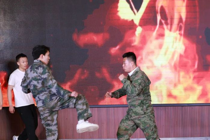 第二组参赛班级登场前,由公司退役士兵和校武术队带来《武术表演》,火热的氛围激发了各参赛班级的斗志,随后三个班级开始演唱,他们用充满感染力的表演,生动诠释了民族团结的重要意义,展现了青年学子对祖国的热爱。