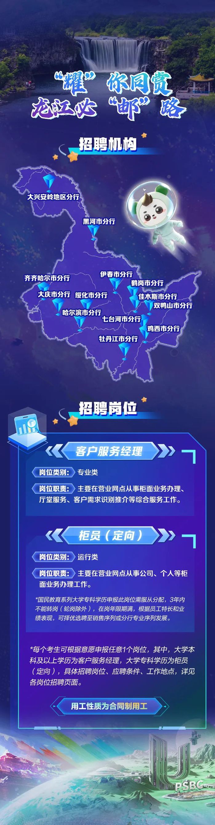【五险二金·财务岗、管理岗、技术岗】中国邮政储蓄银行黑龙江省分行招聘公告,5月5日截止报名...
