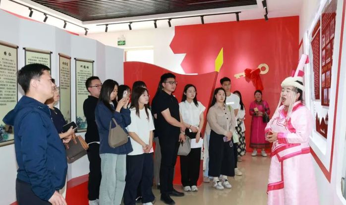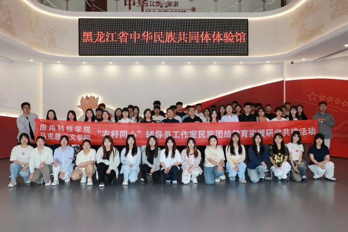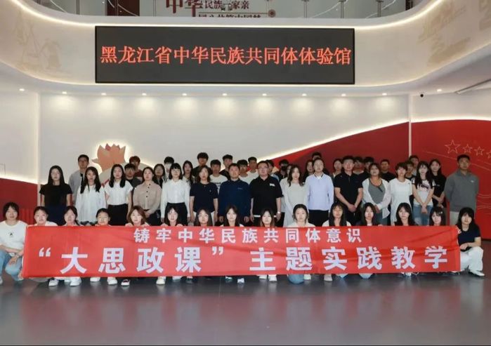 师生首站抵达黑龙江省中华民族共同体体验馆。该馆融合理论研究、教育实践、宣传展示功能,以铸牢中华民族共同体意识为主线,设“同心向党”“同书画卷” 等四大展区。馆内通过实物、图文、互动体验等形式,全景展现中华民族五千多年灿烂文化及各民族团结融合历程,师生在参观中深切感悟中华民族共同体的深厚底蕴与强大凝聚力。