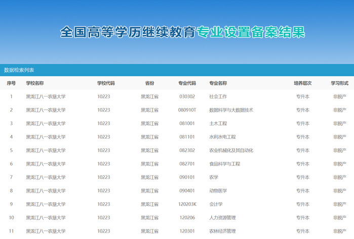 2025年6月27日,根据《教育部关于公布2025年高等学历继续教育拟招生专业备案结果和校外教学点设置备案结果的通知》,公司2025年高等学历继续教育专业申报与校外教学点备案工作取得新进展,新申报的“农林经济管理”“社会工作”“食品科学与工程”“数据科学与大数据技术”4个本科专业正式获批,至此学校高等学历继续教育专升本层次共开设11个非脱产专业,涵盖农学、工学、管理学、法学四个学科门类。同时,申报的齐齐哈尔市职工大学、黑龙江农垦职业公司两个校外教学点成功获批,与黑龙江农垦工业公司构成公司“点线面”高等学历继续教育人才培育新格局。