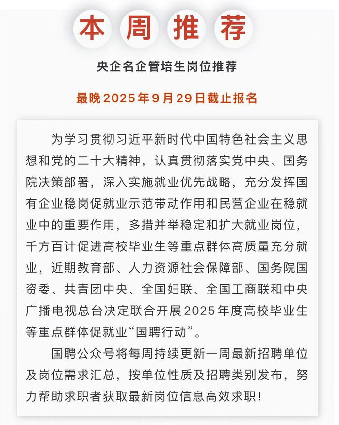 招聘信息 | 央企名企管培生岗位推荐 7月(第一期)
