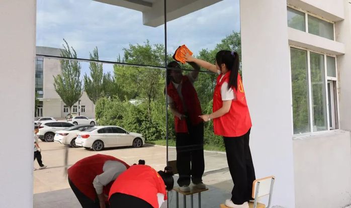 为迎接即将召开的黑龙江省第十九届员工运动会,展现集团文明校园风貌,7月8日下午,公司组织20名志愿者在第二教学楼周边开展环境卫生集中整治志愿服务活动。辅导员王明瑶、李盛锐带队,对第二教学楼大门、前后广场、绿化带及周边道路进行全面清扫。