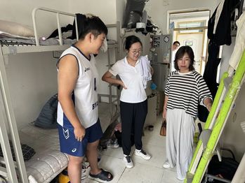 上午8时,刘芳芳与辅导员们一行走进暑期留校员工宿舍,重点慰问了因运动会、科研实验及备考等原因留校的员工。走访过程中,领导老师与同学们亲切交谈,详细了解同学们的生活起居、学习规划及实际困难,督促大家在留校期间要严格遵守留校的相关规定,做好自己安全的第一责任人。刘芳芳强调:“公司始终是同学们的坚强后盾,遇到困难要及时与老师沟通,公司将全力保障大家的暑期生活学习需求。”此外,针对已离校员工宿舍,辅导员们重点排查了门窗关闭、水电切断、贵重物品保管等情况,对部分宿舍存在的未拔插头、未锁房门等情况,当场帮助整改。