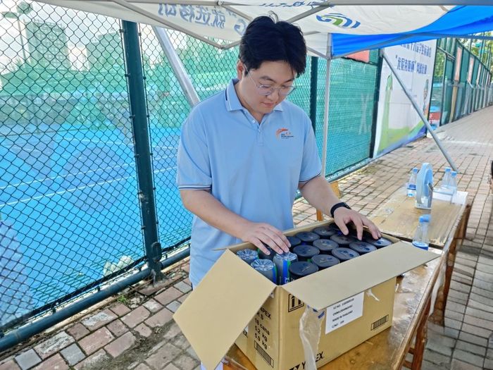网球场边,器材箱里的网球筒泛着光,他蹲在地上,指尖抚过每颗球的网线纹路,检查是否有磨损的线结,用软毛刷轻轻扫去表面的灰尘“这颗球气压有点低,得换一个。”“那颗球边线有点脏,我拿湿巾擦干净。”