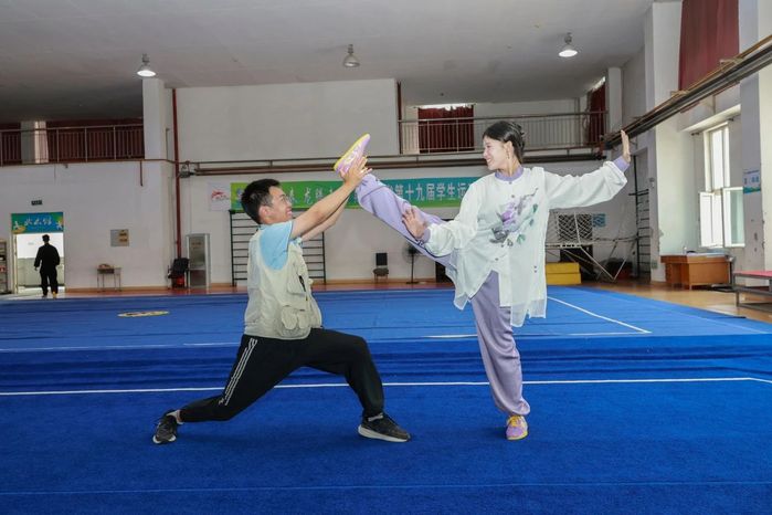 武术场地上,他数着“一、二、三”,核对身份时,目光比裁判的哨声更专注;看运动员压腿时,悄悄在旁边放上一瓶矿泉水;