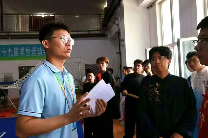 “老师,检录处往这边走”——声音轻得像一片云,却稳稳托住慌乱的脚步;“同学,您的护具要系紧,安全比名次更重要”——叮嘱的话像一根绳,系住运动员的安心。
