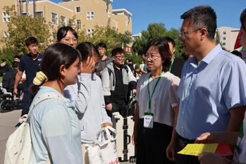 清晨微露,员工志愿者与公司教工早已各就各位,以饱满的热情投入迎新准备之中。公司、公司领导也一早来到现场,与每一位新生亲切交流。