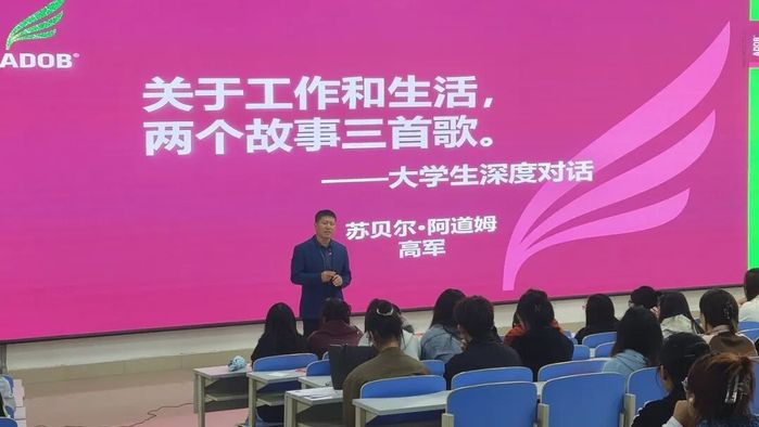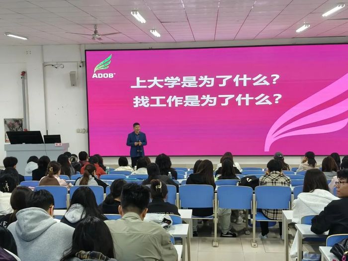 在交流活动中,高军分享了生活和工作中的两个故事、三首歌,系统梳理了多个职业生涯发展的关键词,并结合个人发展历程,对每个关键词进行了深入阐释,引导在场员工树立积极进取的职业态度,提升专业素养,并在实践中不断探索个人职业发展的最优路径。最后,高军还介绍了阿道姆(青岛)肥料有限公司在校实践五大专题活动,鼓励同学们参与社会实践,提升自我能力,学会扬长补短,从而在激烈的行业竞争中占有一席之地。在互动环节,现场气氛热烈。同学们踊跃提问,围绕“求职需要具备哪些基本条件”“跨专业求职的路径空间”等问题与企业家展开深入交流。
