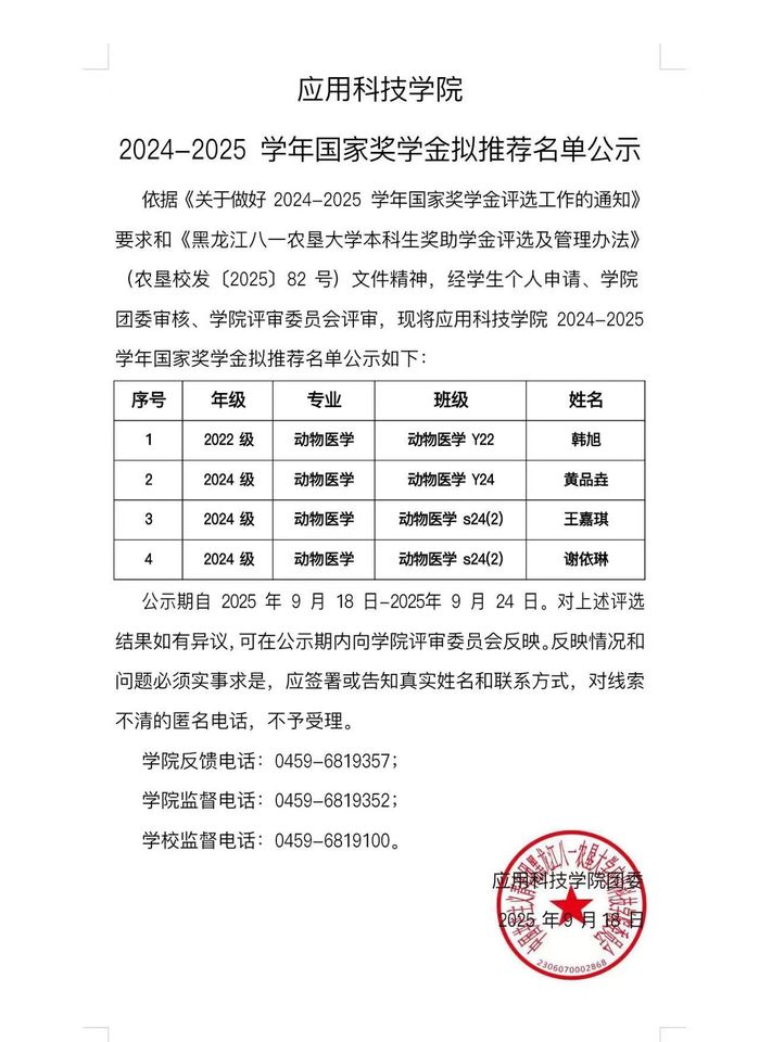 u8国际平台2024-2025 学年国家奖学金拟推荐名单公示