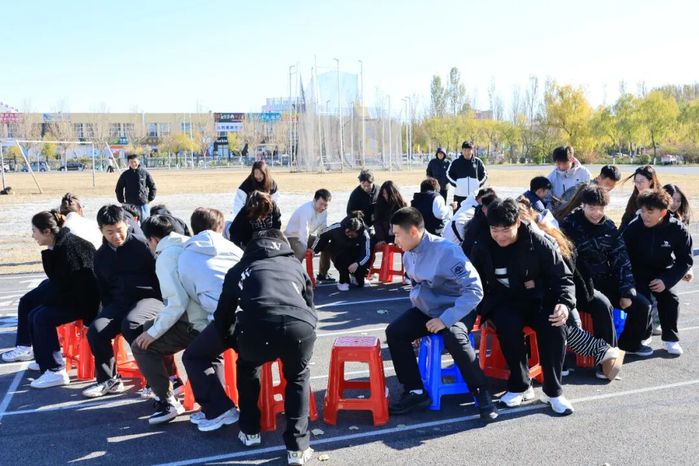 活动伊始,全体成员以昂扬的精神风貌迅速集结,在工作人员的引导下整齐列队。随着指令下达,六列纵队步伐铿锵、精神饱满地跑步进场,嘹亮的口号响彻体育场,充分展现了员工骨干朝气蓬勃的精神状态。简短的开场动员后,破冰互动环节正式开启,同学们在轻松有趣的小游戏中快速拉近彼此距离,现场氛围逐渐热烈起来。